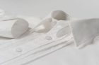 Die Baumwollpfoad Ist ein klassisches weißes Trachtenhemd aus bügelarmer Baumwollqualität mit Querriegel und gesteppten Biesen, zu schließen mit Zwirnknopf.